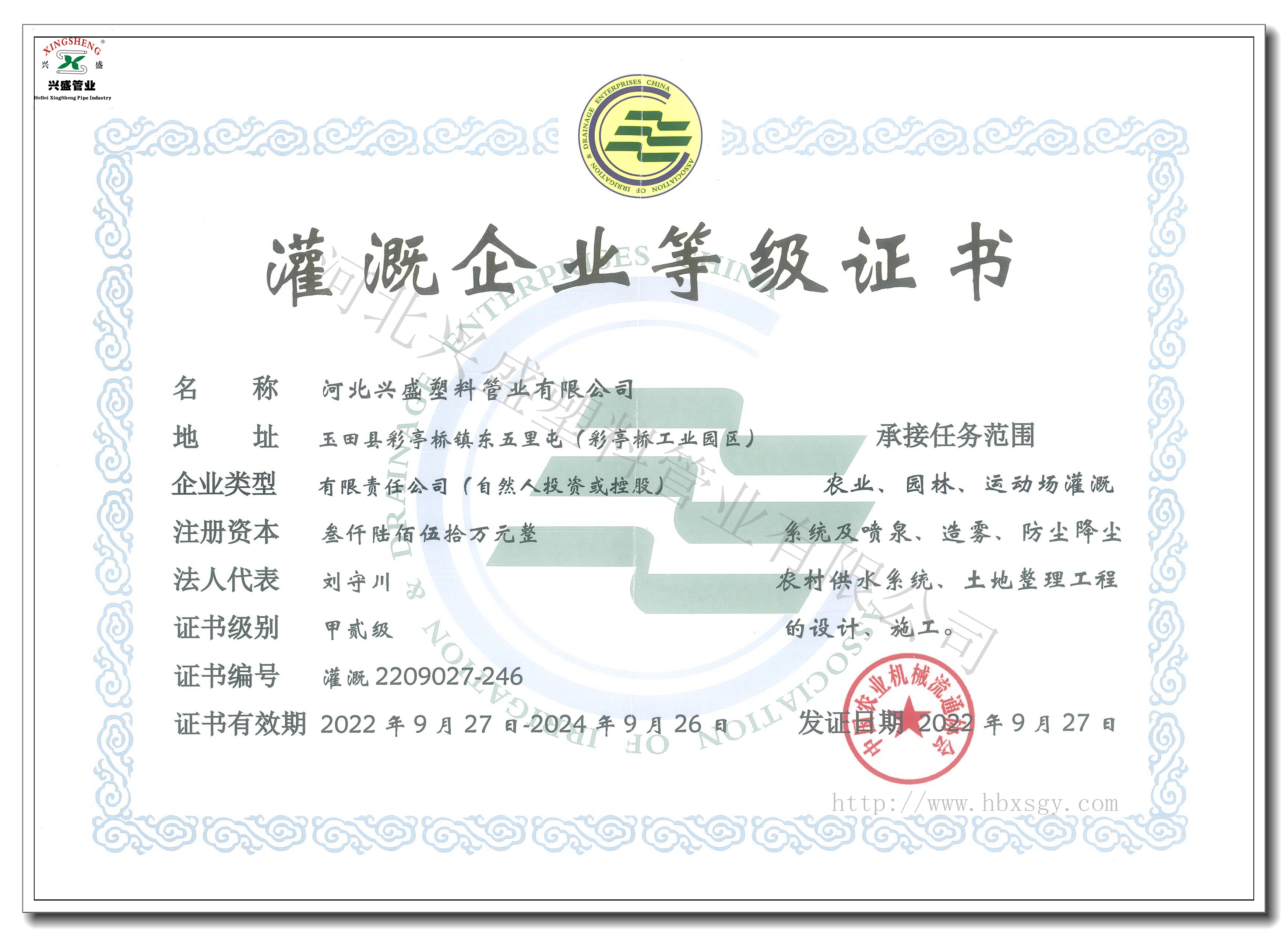 河北興盛塑料管業(yè)有限公司,始建于1981年,至今已有四十多年的發(fā)展歷程,致力于人畜飲水、節(jié)水灌溉等管道系列產(chǎn)品的研發(fā)、生產(chǎn)、銷售、設(shè)計安裝于一體的綜合型現(xiàn)代化企業(yè).....